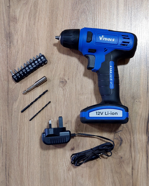 شارژر - 2 عدد مته - 10 عدد سری پیچ گوشتی - یک عدد رابط پیچ گوشتی